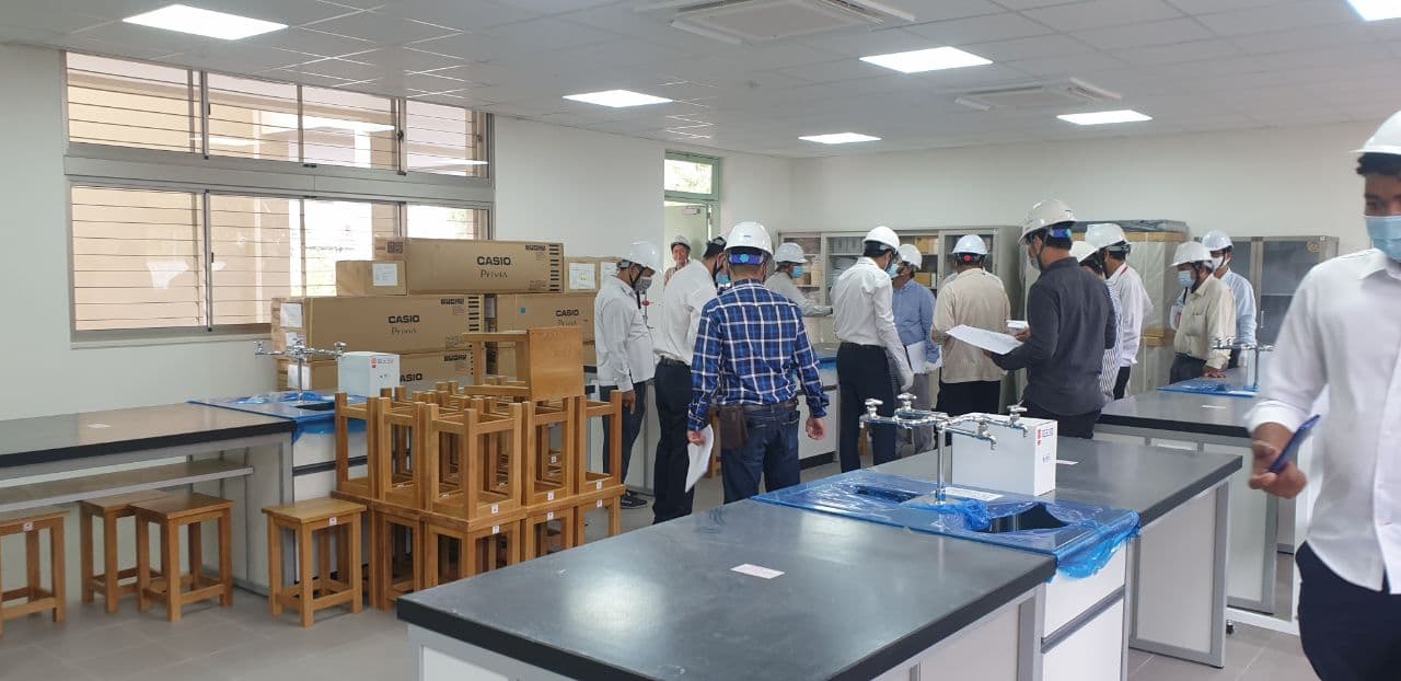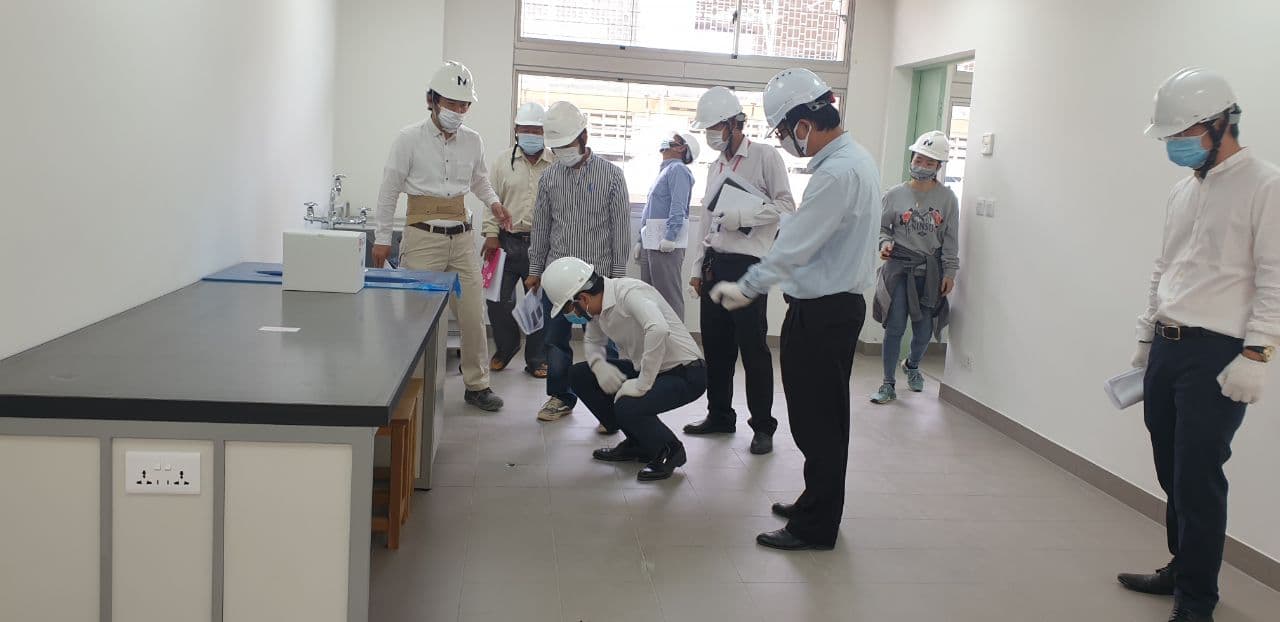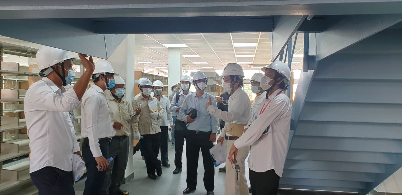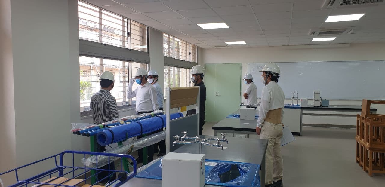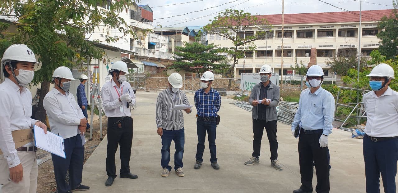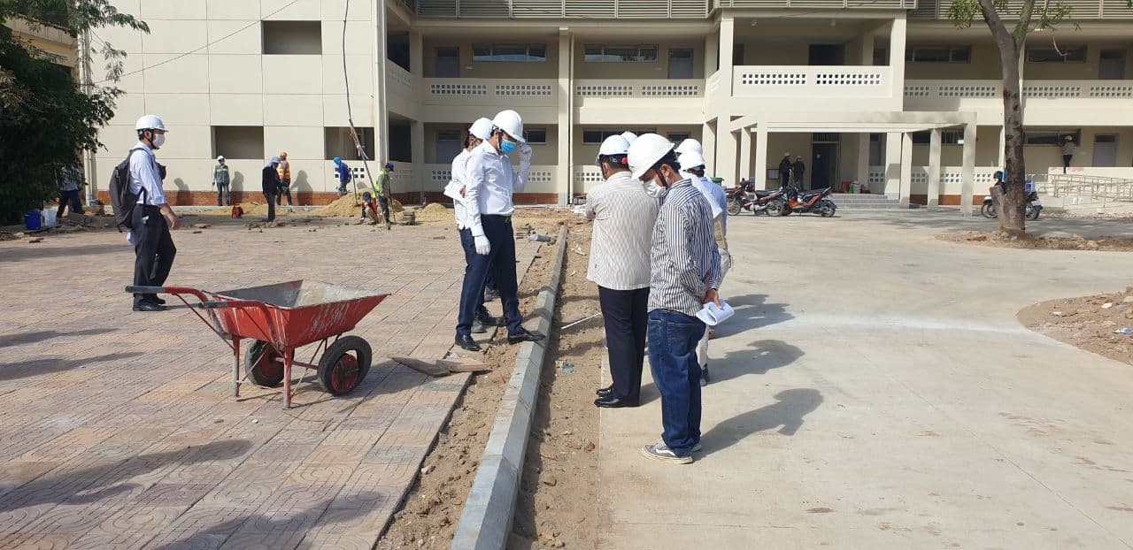 គណៈកម្មការអធិការកិច្ចសំណង់ របស់ក្រសួង អប់រំ យុវជន និងកីឡា ដឹកនាំដោយឯកឧត្តមបណ្ឌិត ឌី ខាំបូលី អគ្គនាយករង នៃអគ្គនាយកដ្ឋានគោលនយោបាយ បានចុះពិនិត្យគុណភាពអាគារថ្មីសាងសង់ដោយ JICA