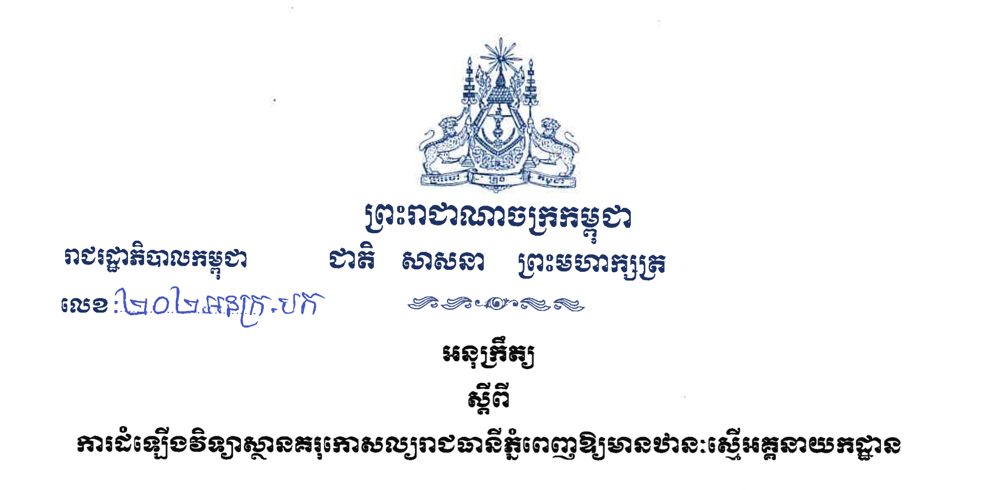 តំណភ្ជាប់សម្រាប់ទាញយកឯកសារអនុក្រឹត្យ៖https://drive.google.com/file/d/1ShOcqZm5Ny3Mw123_3mAJ024gzO7978g/view?usp=sharing